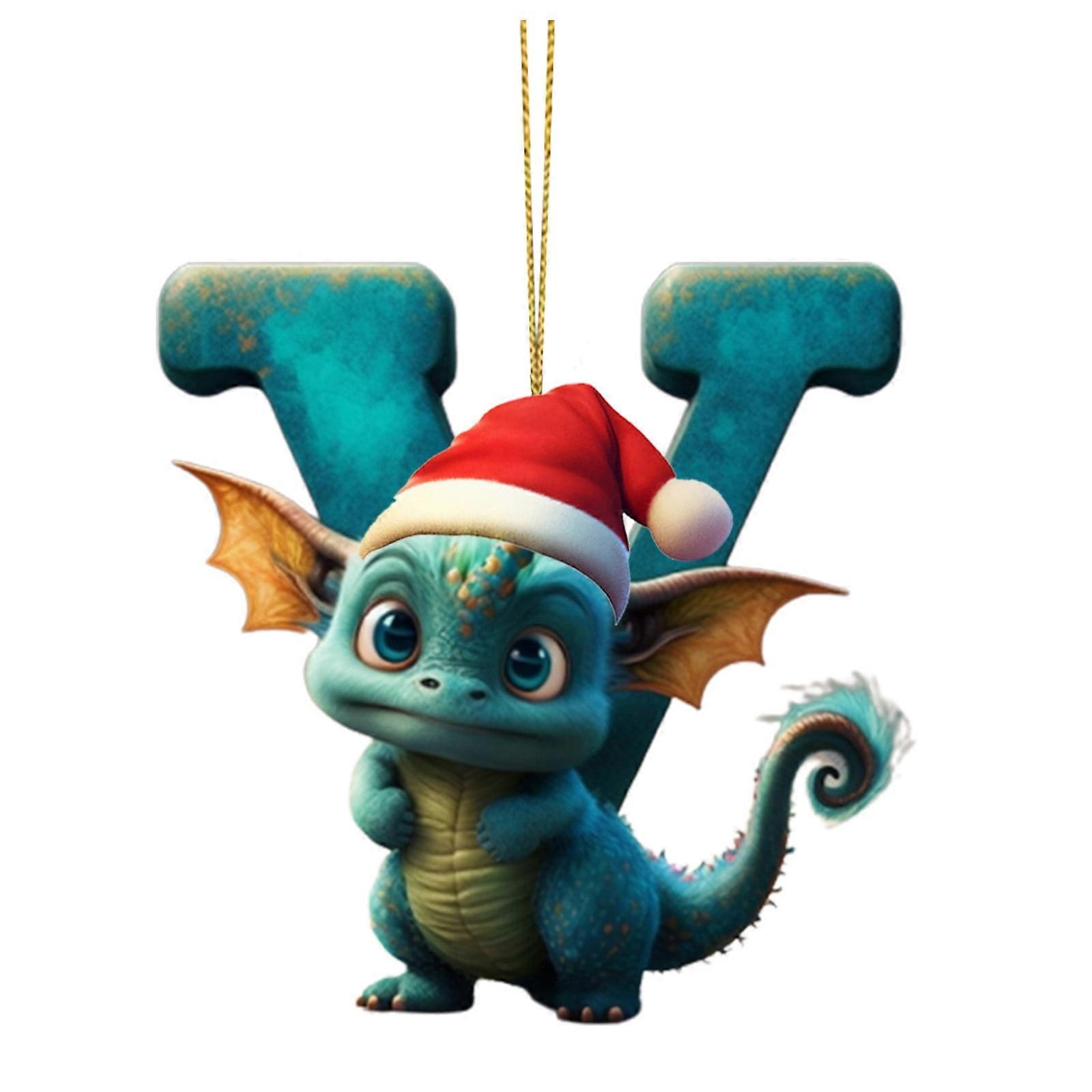 SDJMa Dragon Christmas Ornament, 26 Letters Cute Cartoon Dragon Xmas Decor for Tree, Gift for Dragon Lover, Holiday Party Home Decor