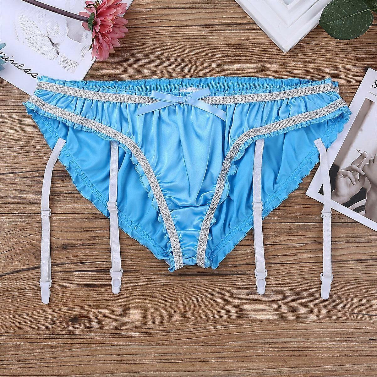 Satin Ruffled Sissy Panties Glossy Bikini Full Cut Lined Briefs Men's Garter
