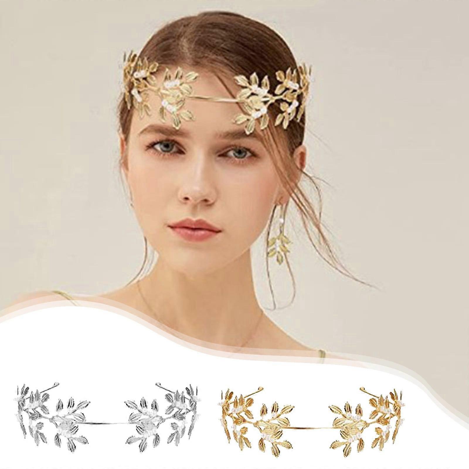 Bridal Gold Leaf Headband Bridal Headgear Gold Leaf Headgear For Wedding Prom Festive Bridesmaid Hair Accessories (Gold And Silver) Home Decor
