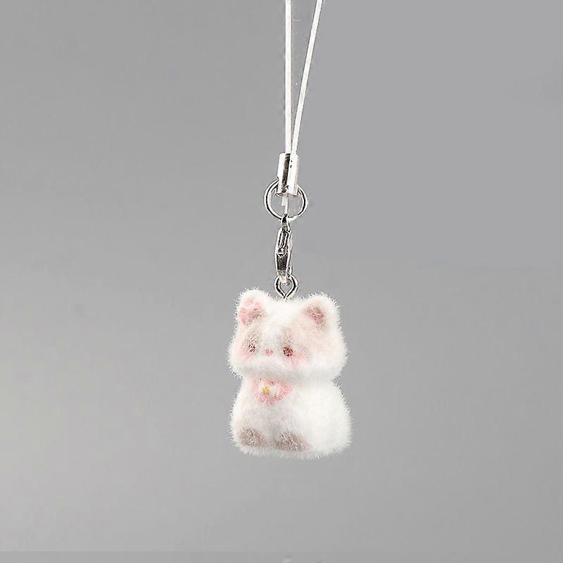 Kawaii Plush Cute Cat Keychain Flocking Animal Pendant Phone Lanyard Hanging Keycord Charm Key Chains DIY Accessories Girl Gifts
