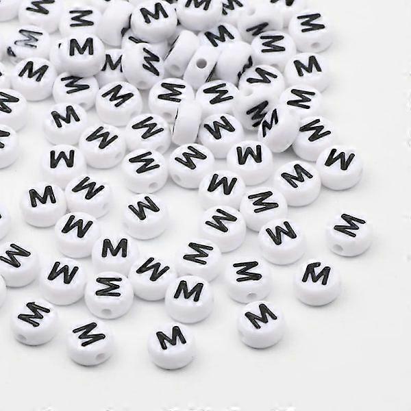 50/100/200pcs/lot 7x4mm White Round AZ Alphabet Letter Acrylic Loose Spacer Beads for Jewelry Accessories DIY Bracelet M