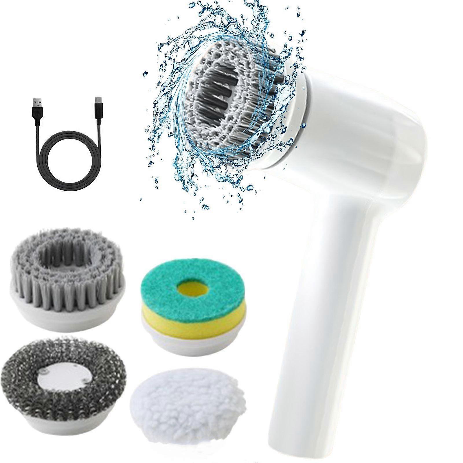 PAVEOS Electric Scrubber with 4 Brush Heads, Strength Adjustment, Power Cleaning Brush for Bathroom Tiles - White