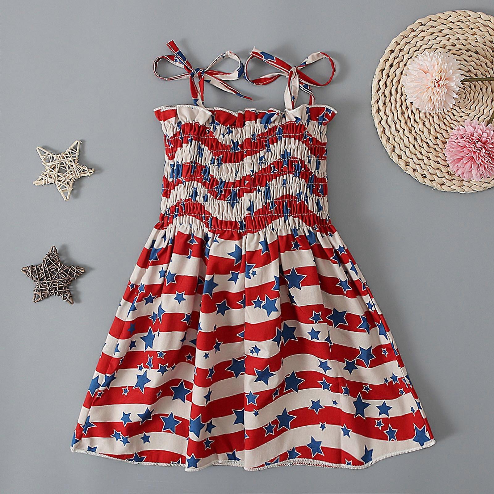 Product Description: Fashion design,100% Brand New,high quality! Material: Cotton Blend Pattern Type:print Sleeve length:Suspenders Main Color: As The Picture Show Style:Fashion Stylish and fashion design make your baby more attractive Great for casual, Daily, party or photoshoot, also a great idea for a baby show gifts It is made of high quality materials,Soft hand feeling, no any harm to your baby's skin Please allow slight 1-3cm difference due to manual measurement and a little color variation for different display setting, thanks for your understanding! 1 inch = 2.54 cm Attention plz: If your kid is big size, we recomend choosing a larger size, thanks. Thank you and nice day! Package include: 1PC Dress Size Chart: Recommended Age:1-2 YearsSize:90Dress Length (without Straps):41cm/16.14''Bust (before stretched):38cm/14.96''Bust (after stretched):66cm/25.98'' Recommended Age:2-3 YearsSize:100Dress Length (without Straps):43cm/16.93''Bust (before stretched):40cm/15.75''Bust (after stretched):68cm/26.77'' Recommended Age:3-4 YearsSize:110Dress Length (without Straps):46cm/18.11''Bust (before stretched):42cm/16.54''Bust (after stretched):72cm/28.35'' Recommended Age:4-5 YearsSize:120Dress Length (without Straps):49cm/19.29''Bust (before stretched):44cm/17.32''Bust (after stretched):74cm/29.13'' Recommended Age:5-6 YearsSize:130Dress Length (without Straps):51cm/20.08''Bust (before stretched):46cm/18.11''Bust (after stretched):76cm/29.92'' Shldybc Relaxed Fit Suspenders American Flag Dress, 4-5 Years (Girl's) Materials: 100% new, made of high-quality materials that are safe and reliable Design: Cotton blend that is soft, breathable, and stretchy, ensuring comfort for your child all day long Features: Adorned with a cute American flag pattern, star print, and bow decoration, perfect for celebrating Independence Day Occasion: Ideal for patriotic celebrations such as Memorial Day, 4th of July, and other holidays, as well as daily wear, outdoor sports, and photography