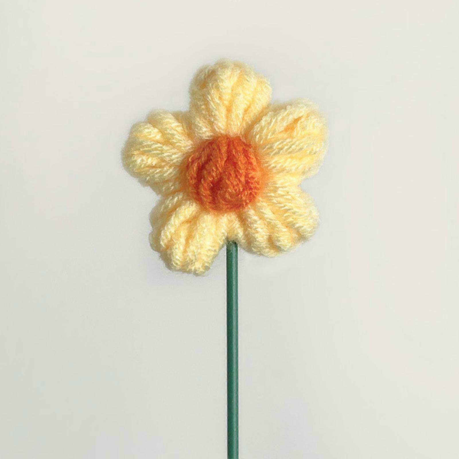 5pcs Hand-Knitted Flower Crochet Finished Flower Bouquet Handwoven Flower Wedding Party Decoration Valentines Day Gift light yellow