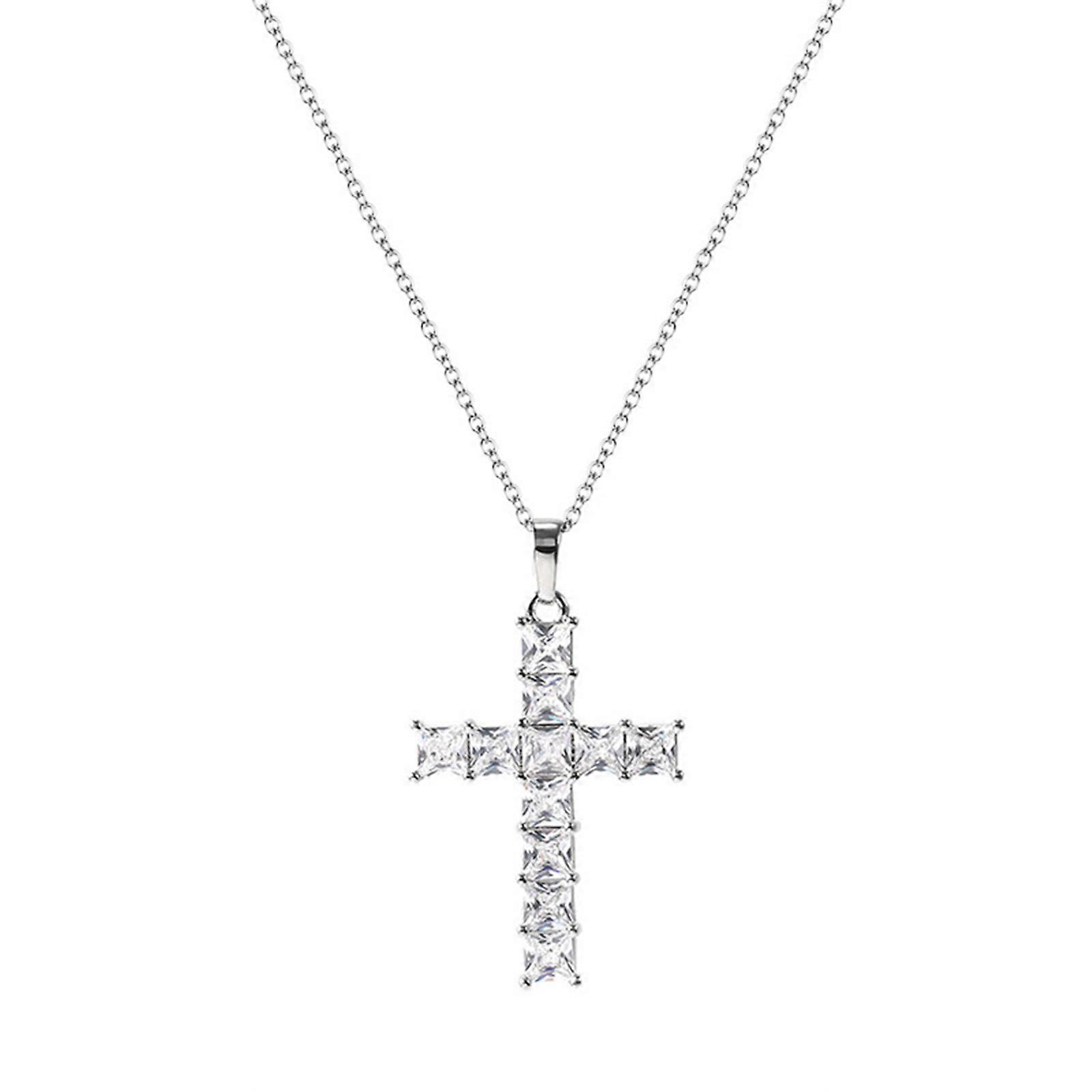 Hip Hop Girls Cross Pendant Necklace with Brilliant Cubic Zirconia Rock Party Accessories for Women Personality Gift Multicolor