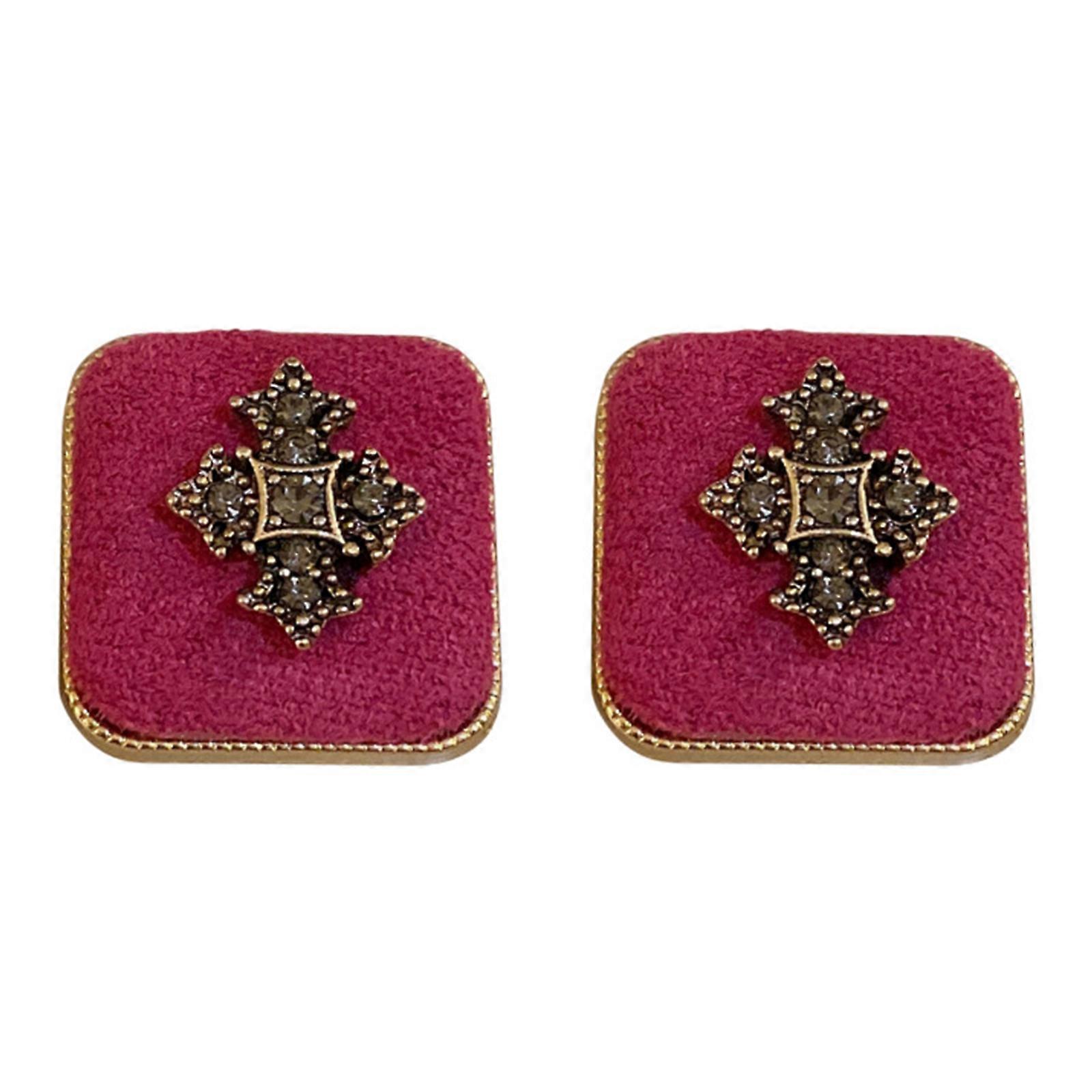 Sweet Rose Pink Cloth Stud Earrings Fashion Piercing Earrings Elegant Corss Heart Ear Stud Jewelry Gift for Women Girls Multicolor