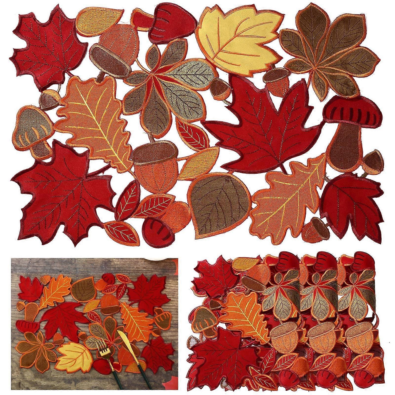 Fall Placemats Thanksgiving Place Mats Fall Autumn Maple Leaf Embroidered Placemats 11 x 17 Inch Thanksgiving Table Place Mats