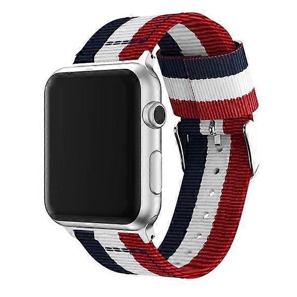 SKALO Nato Strap Metal Buckle compatible with Apple Watchwith Apple Watch Series 10 46mm - Red-White-Blue Multicolour