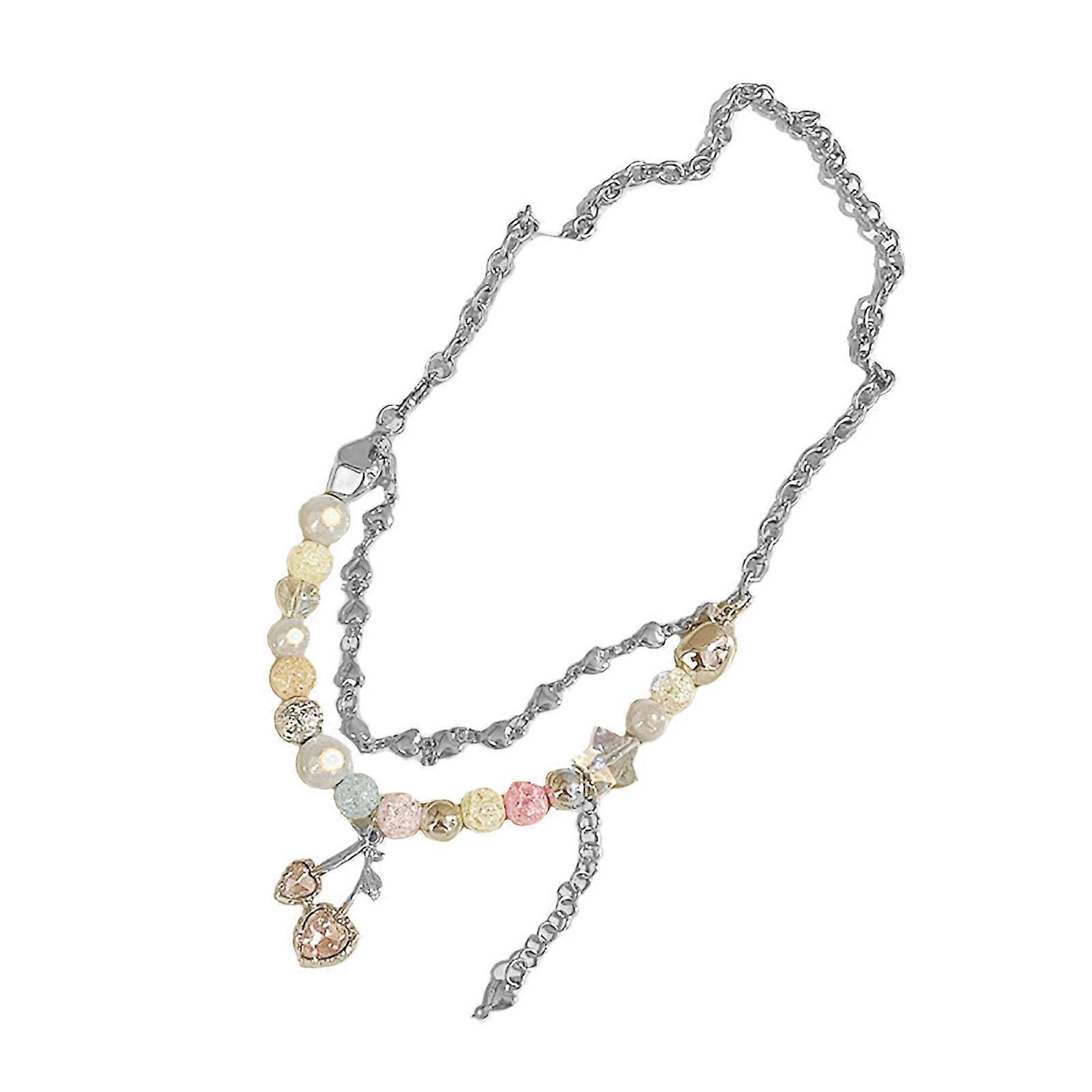 Y2K Accessories Fashion Cherry Heart Pendant Necklace Bracelet Bilayer Sweet Cool Bead Clavicle Chain Aesthetic Jewelry Multicolor