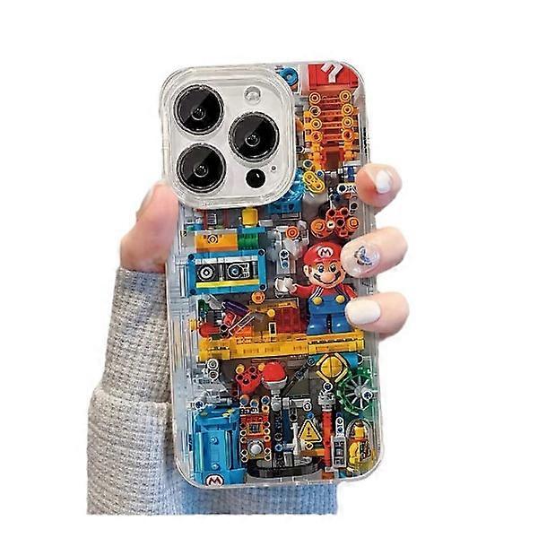 2024 New Aesthetic Phone Case compatible with iPhone, Mario Building Blocks Design for Girls Women, Soft TPU Case for compatible with iPhone 12 Pro