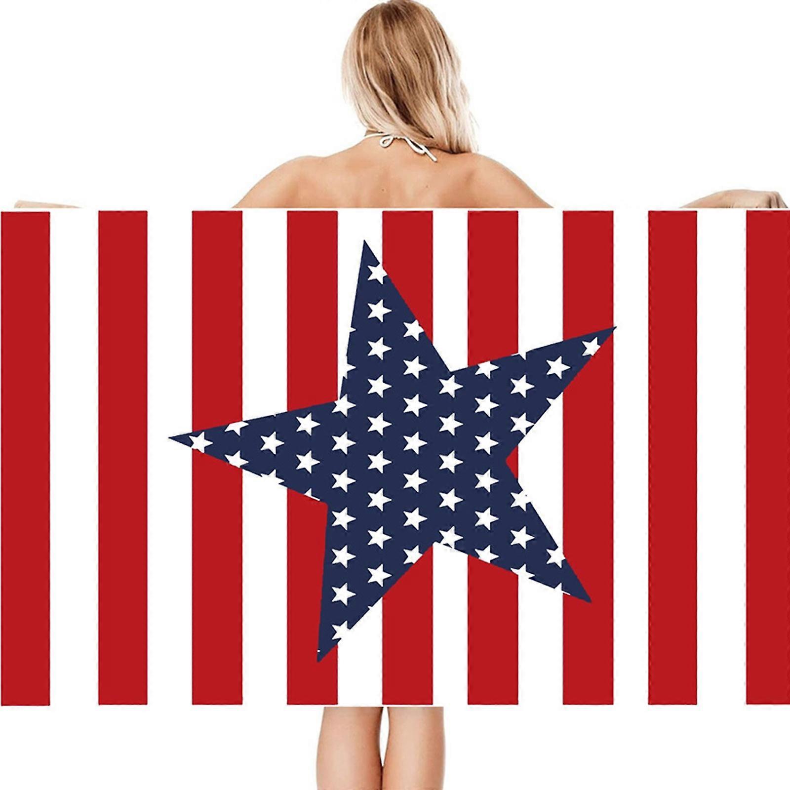 4th of July Patriotic Beach Towel - Microfiber Flag Print, Water Absorbing, Sandproof, Lightweight, 27.5" x 55.1"