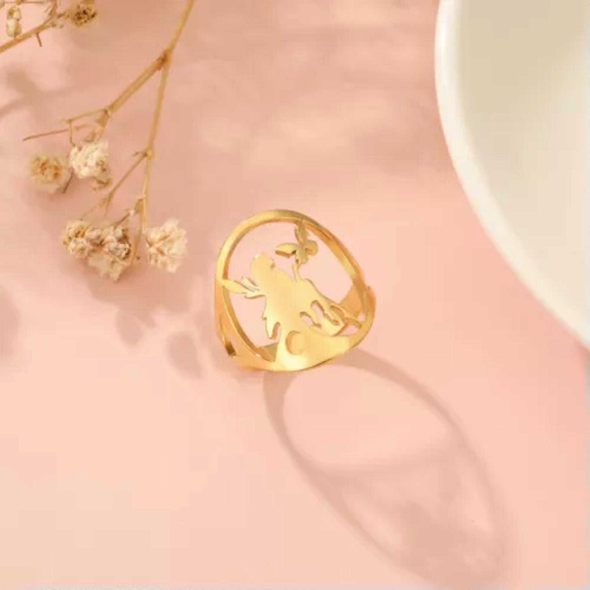 RSAMD Butterfly Moon Elf Fairy Ring Stainless Steel for Women Jewelry-A gold-8