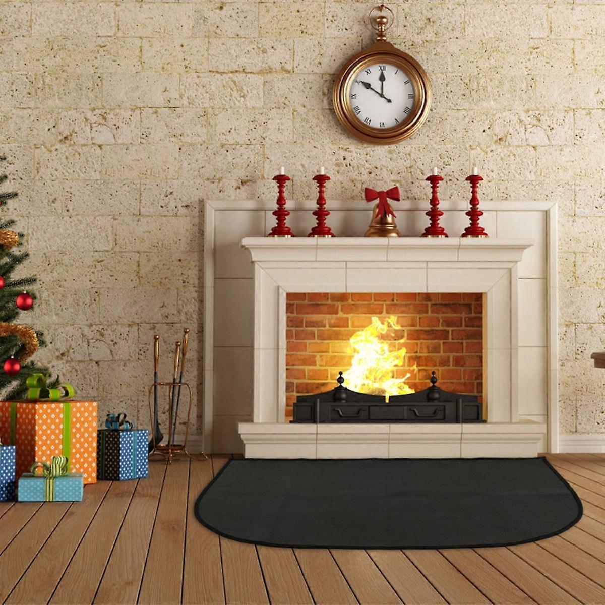 Lzvxtym Half Round Fireplace Mat, Fireproof Hearth Rug, Fire Retardant Carpet, Black, 20" x 39"