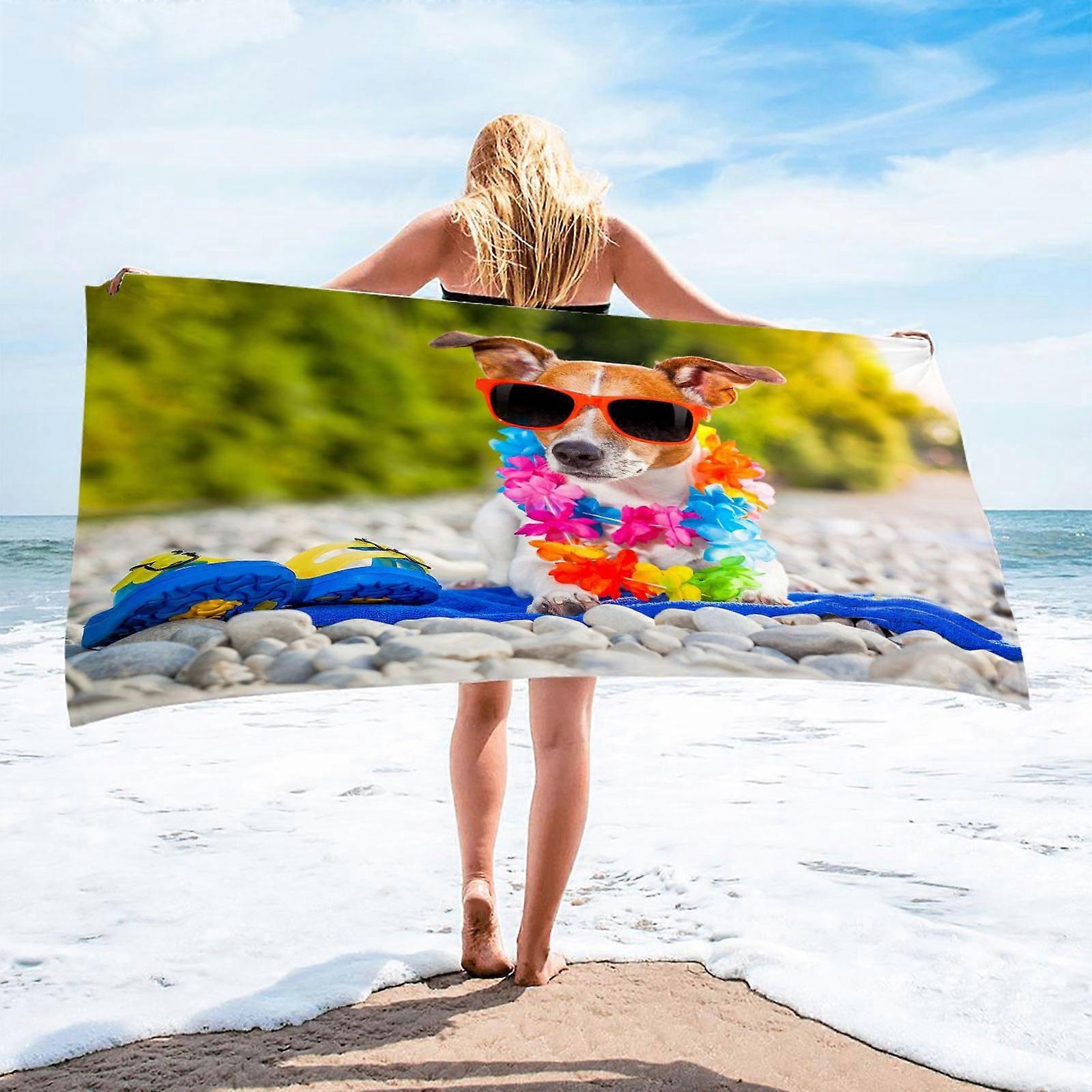 Txmfgh Dog Themed Beach Towel: 30x60in Quick-Dry Microfiber, Lightweight & Sand Free, Ideal for Swimming, Sunbathing, Travelers