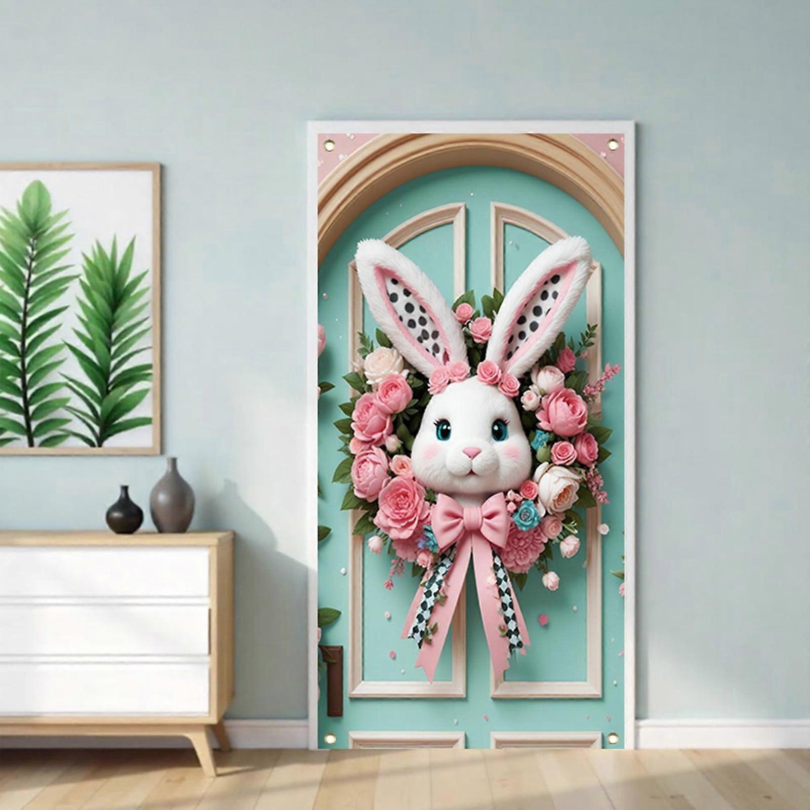 YMARPT Happy Easter Door Cover, Fabric Easter Bunny Door Cover compatible with photography backdrop, Cute Carrot Rabbit Egg Banner