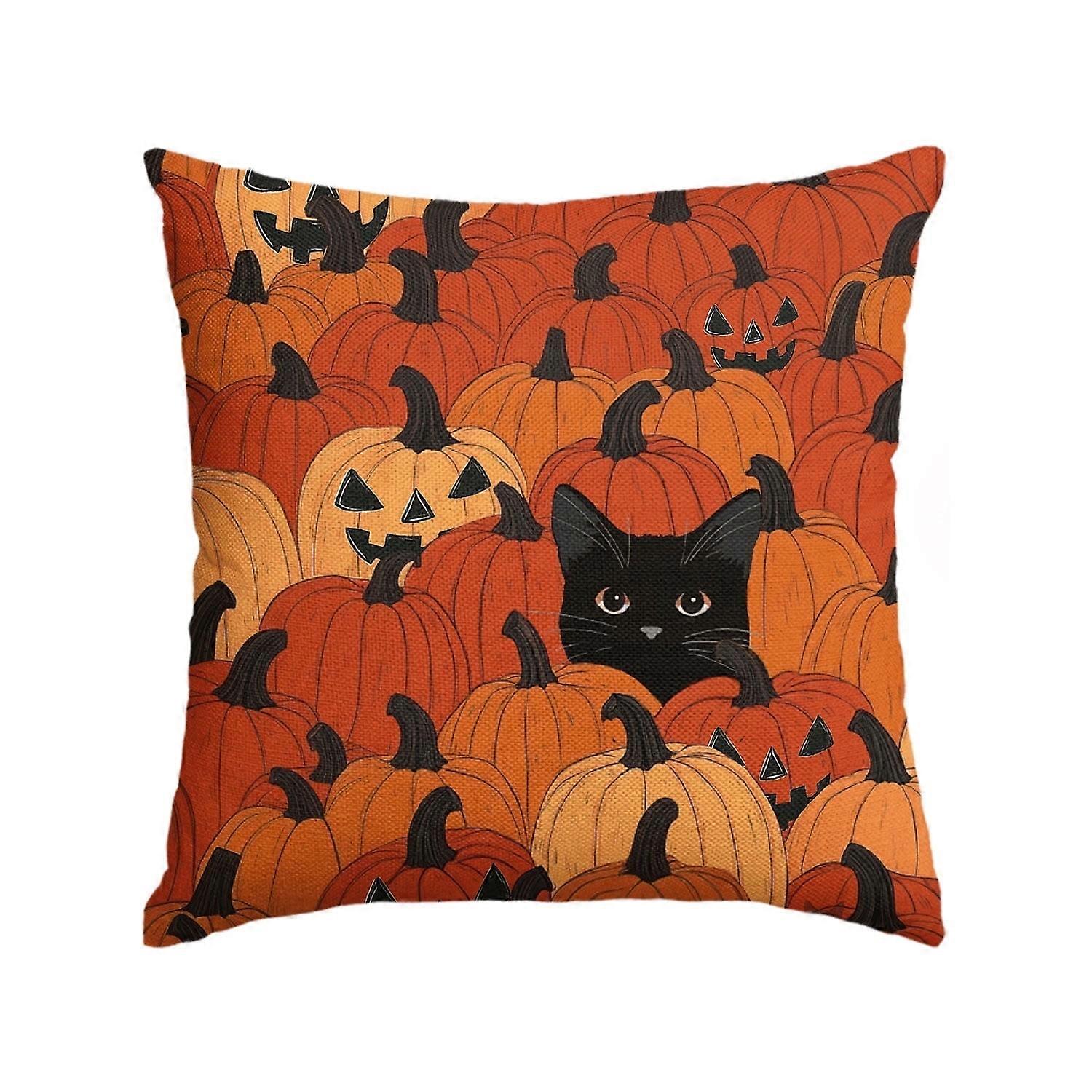 Sm:)e Black Cat Jack-O'-Lantern Halloween Throw Pillow Cover 18x18 Inch