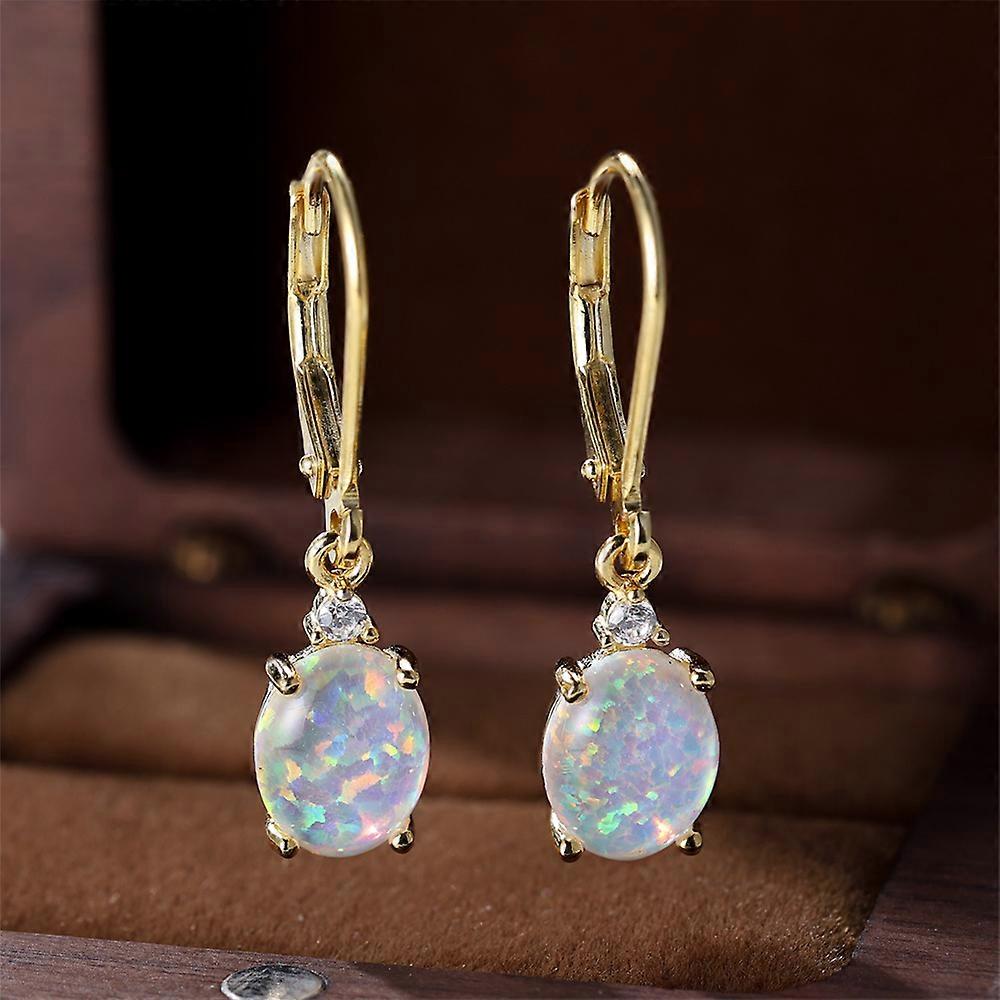 White Blue Opal Oval Stone Hoop Earrings For Women Real 925 Sterling Silver Wedding Jewelry Engagement Accessory