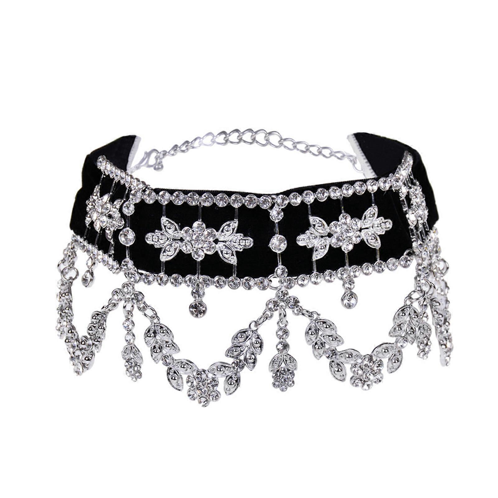 Vintage Velvet Choker Necklace Adjustable Rhinestone Pendant Necklace Gothic Collar Jewelry Short Chain Necklace Multicolor