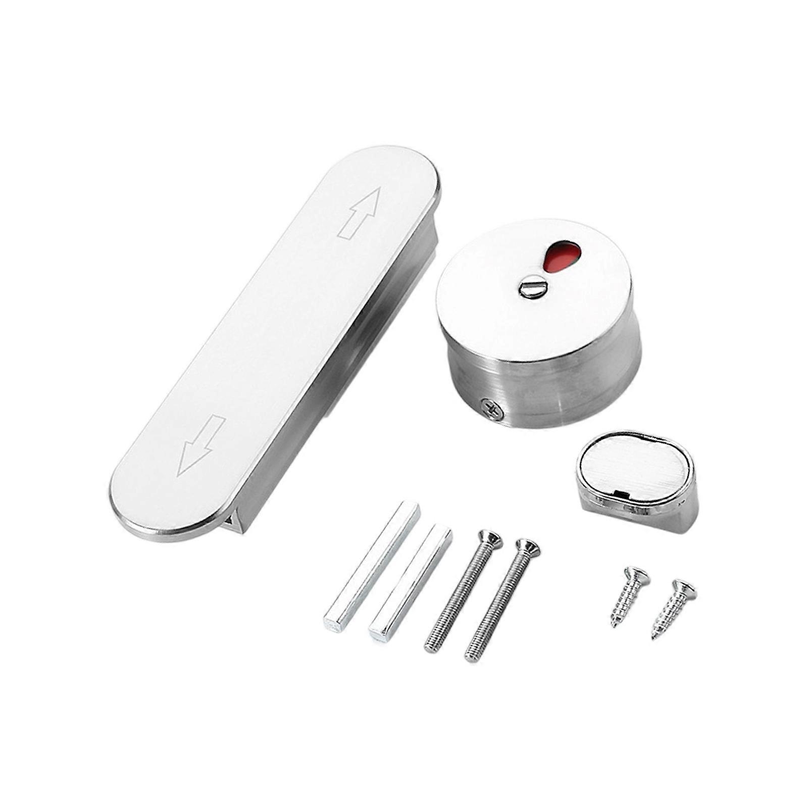 Zincs Alloys Toilet Door Sliding Lock Public Privacy Lock with Occupancy Indicator Quiet Push Lock for Bathroom Door Steel color