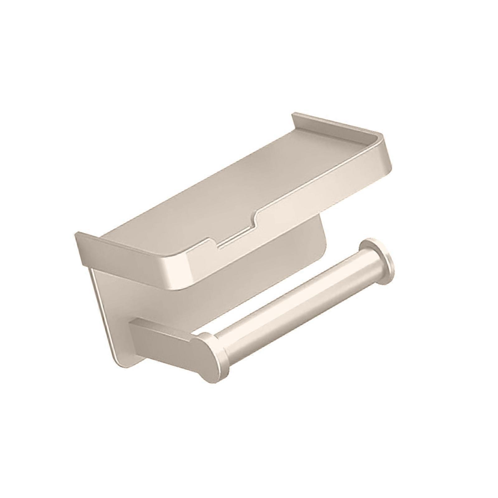 Wall Mounted Toilet Paper Holder Aluminum Alloy Bathroom Tissue Holder Space Saving Phone Storage Shelf Easy to Use White milk