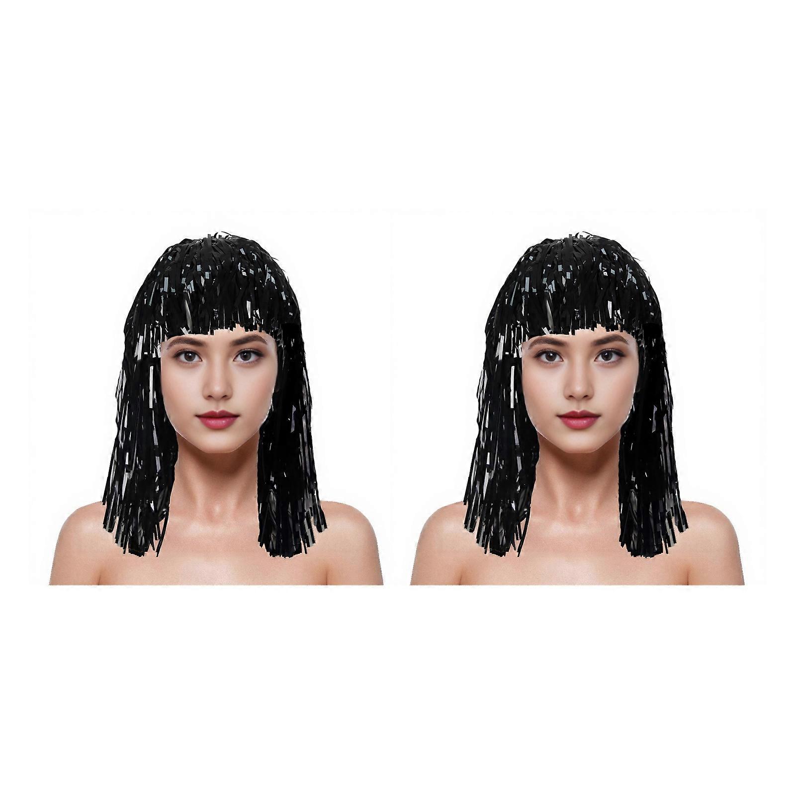 2 PCS Foil Tinsel Wigs, Fancy Dress Shiny Party Wig, Hairpiece Tinsel Wigs, Adults Men Women Cosplay Headwear Masquerade Wig Party Accessories