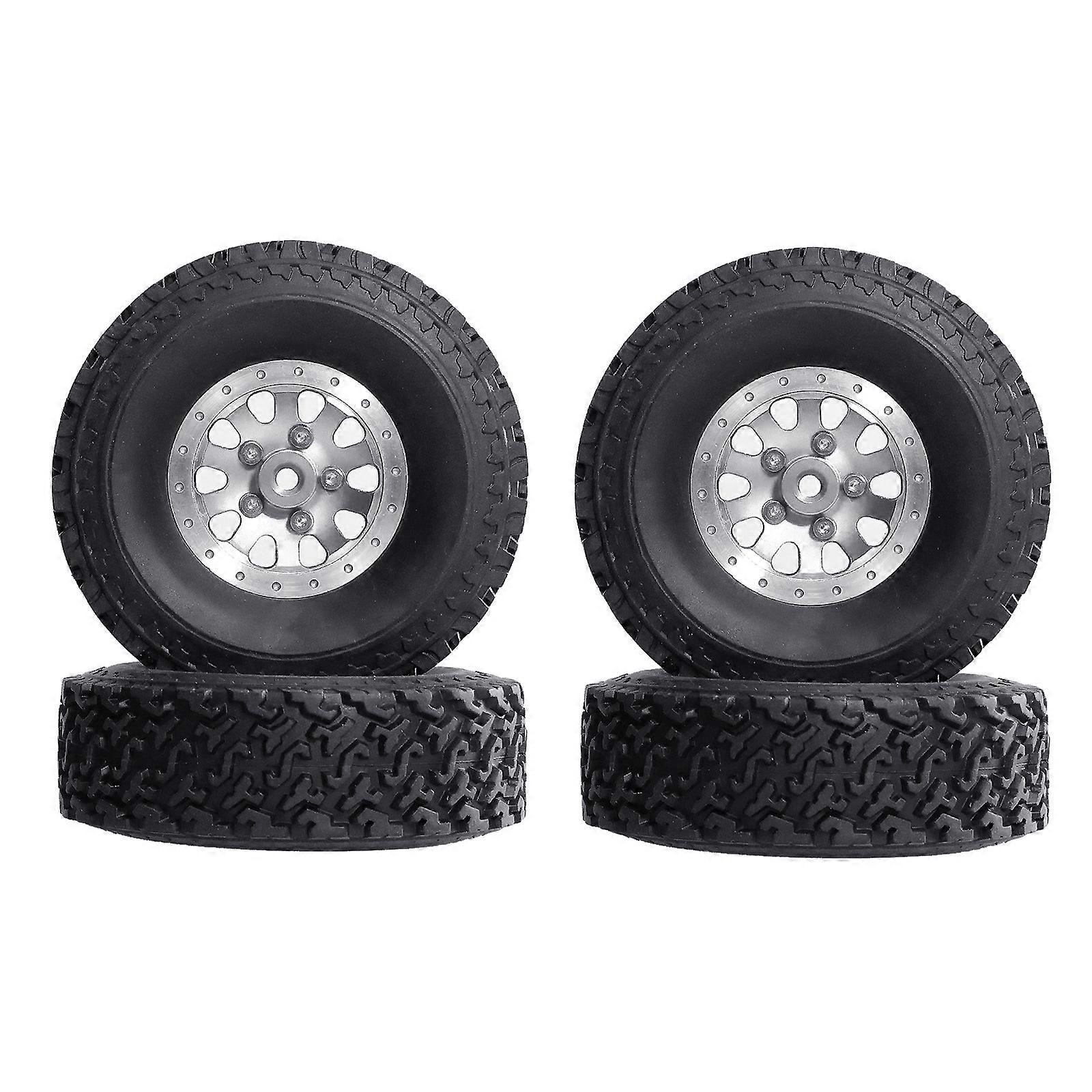 4 Pieces Light Weight Aluminum Beadlock Wheels with Reinforced Tires for Remote Control Vehicle Traction Control Silver