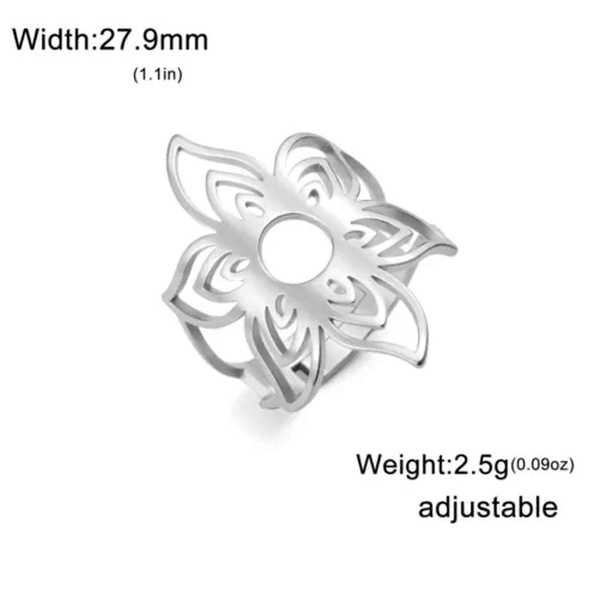 RSAMD Triple Flower Rings Stainless Steel Adjustable Finger Rings for Women Jewelry-Steel-Adjustable