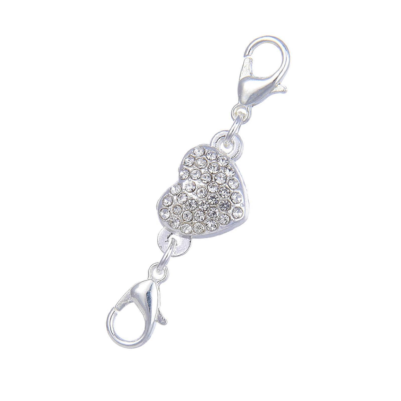 Magnetic Jewelry Fastener Diamonds Embedded Design Sturdy Alloy Construction Connector For Necklace Bracelet Attachment Silver