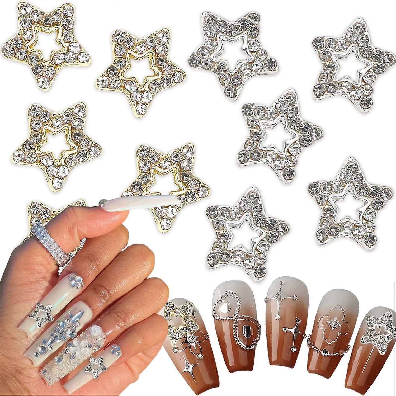 10Pcs Shiny Alloy Star Nail Charms Rhinestones for Nails 3D Stars Silver Gold Nail Charms Nail Gems Nail Rhinestones Star Charm Nail Jewels Nail Art