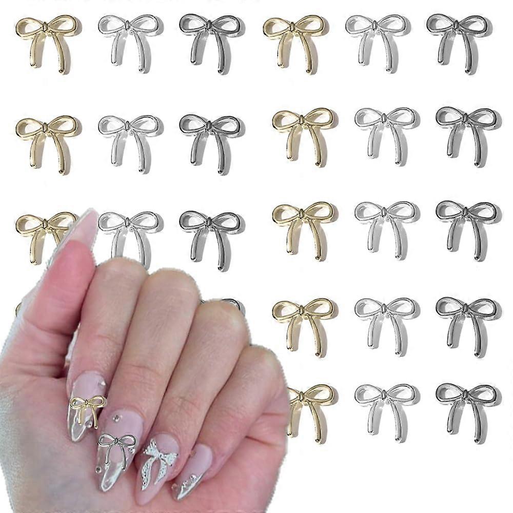 30Pcs Bow Nail Charms 3D Silver Gold Bow Alloy Nail Art Charms Cute Bow knot Nail Decorations Nail Charms for Nails Nail Charms for Acrylic Nails Su