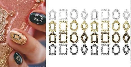 40pcs 3D Metal Nail Charms,Frame Gothic Nail Art Charms,Retro Gold Silver Nail Jewels Art Decor for Women Girls Acrylic Nail DIY Craft Design Manicu