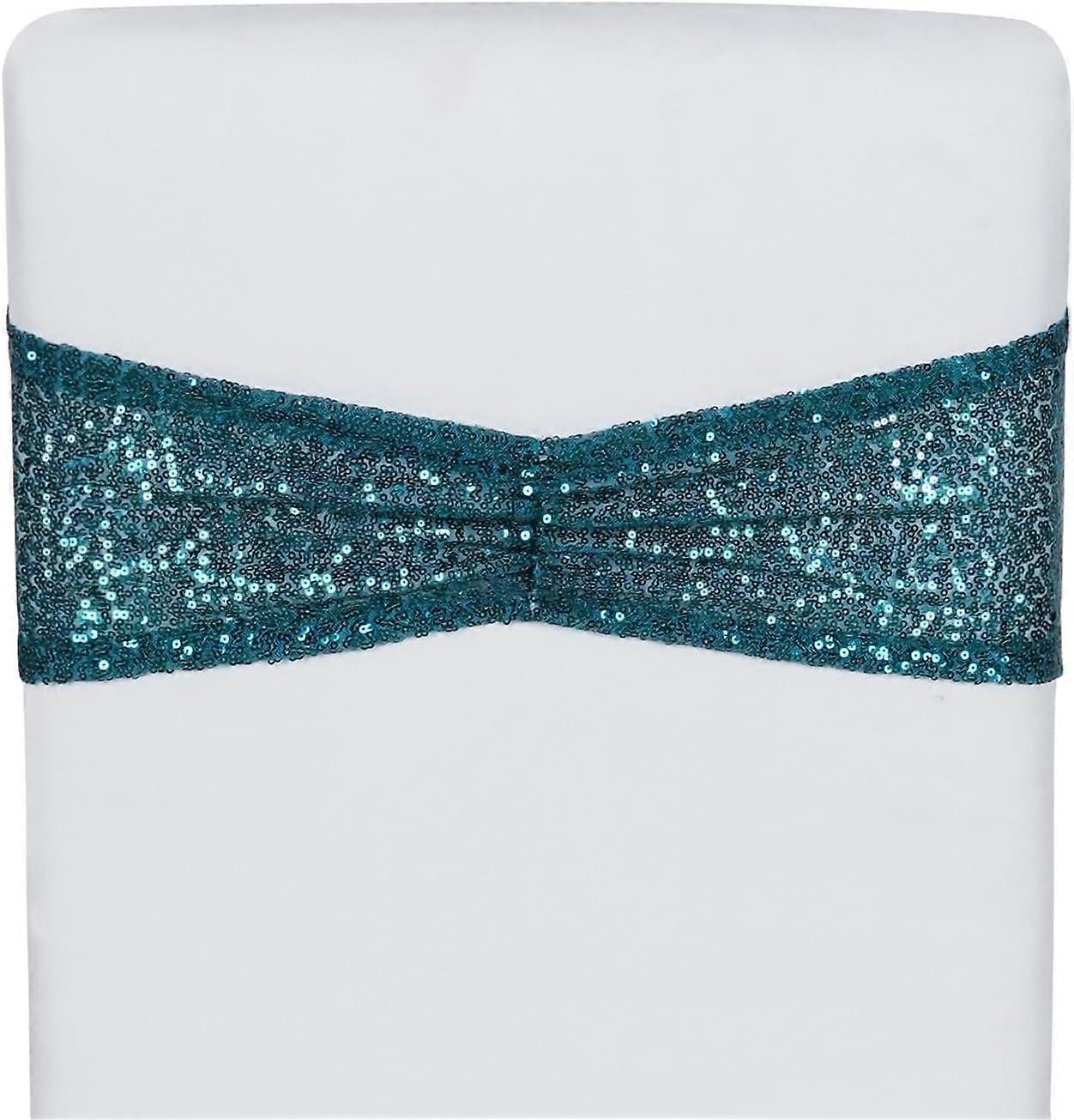 Pack of 50 Sequin Chair Sashes Teal Chair Bows Bands for Party Wedding Banquets Decor