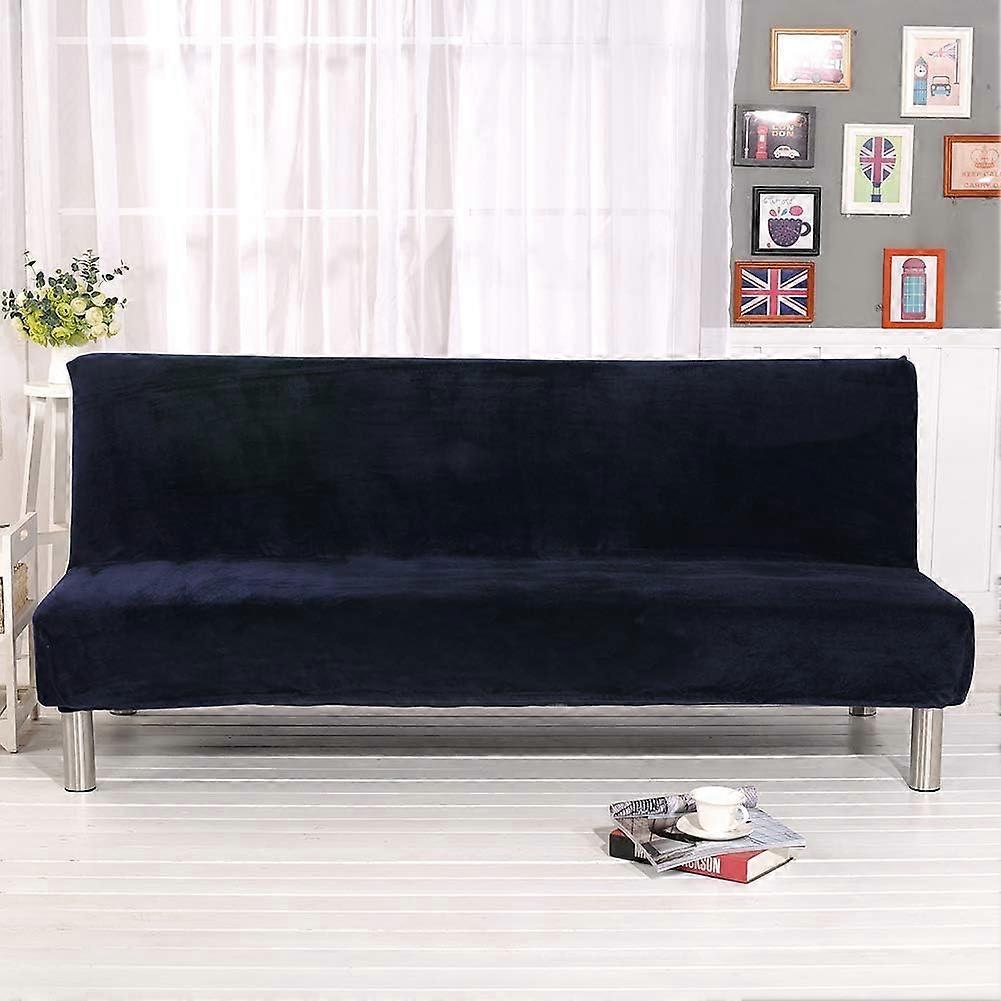 Plush Sofa Cover Armless Sofa Slipcover Stretch Velvet Sofa Bed Cover Protector Elastic Spandex Modern Simple Folding Couch Futon Cover Dark Blue+th