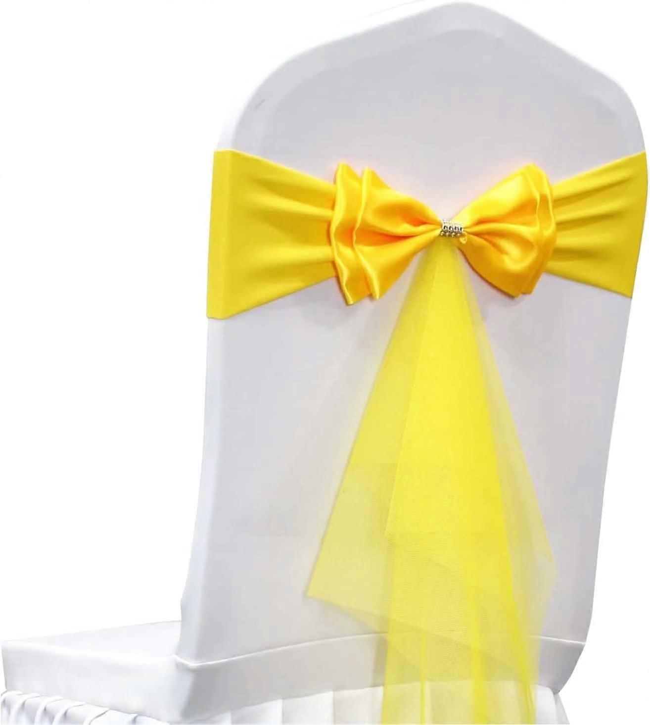 Nœuds de chaise en spandex, rubans et nœuds élastiques en polyester pour la décoration de fêtes, hôtels, mariages et banquets (Jaune)