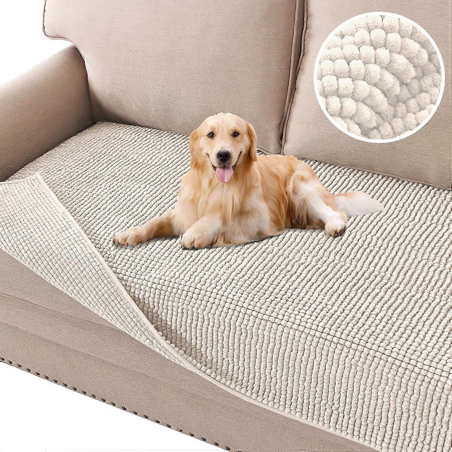 Plush Chenille Dog Bed Cover Thick Soft Sofa Cover for 3 Cushion Couch Anti Slip Couch Cover Furniture Protector for Dog, Pet, Cat (35" x 82", Ivory
