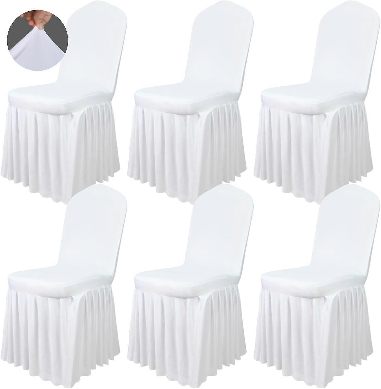 6 Pack White Chair Covers with Skirt|Super Fit Spandex Chair Seat Protector|Chair Covers Wedding| for Dining Room, Hotel, Ceremony for Wedding, Banq
