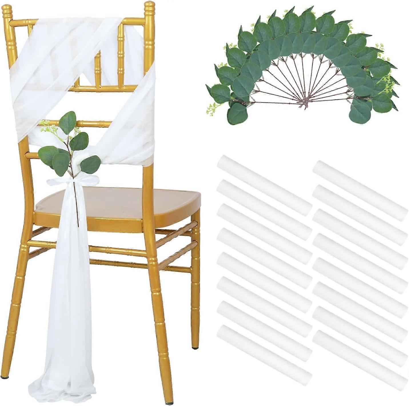 White Chair Sashes 16 Pcs Tulle Chair Covers 8FT Wedding Aisle Chairs Decorations Sheer Fabric for Draping with Artificial Eucalyptus Chiffon Chair