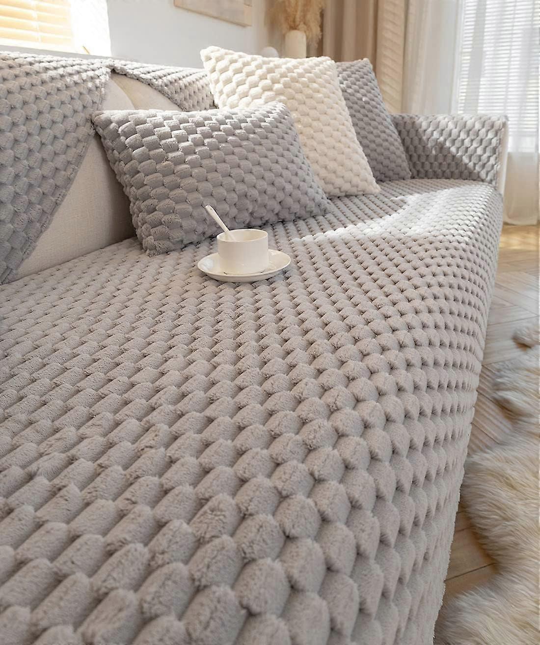 Honeycomb Pattern Fluffy Faux Fur Sofa Couch Cover Super Soft Fuzzy Shaggy Sectional Couch Cover Non Slip Plush Warm Sofa Slipcover Furniture Protec