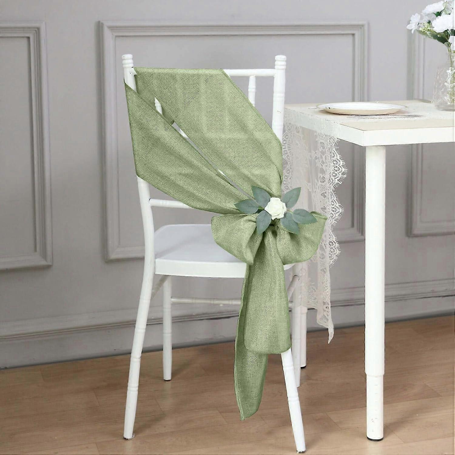 5 Pack | Sage Green Jute Faux Burlap Chair Sashes, Boho Chic Linen Decor - 6"x108"