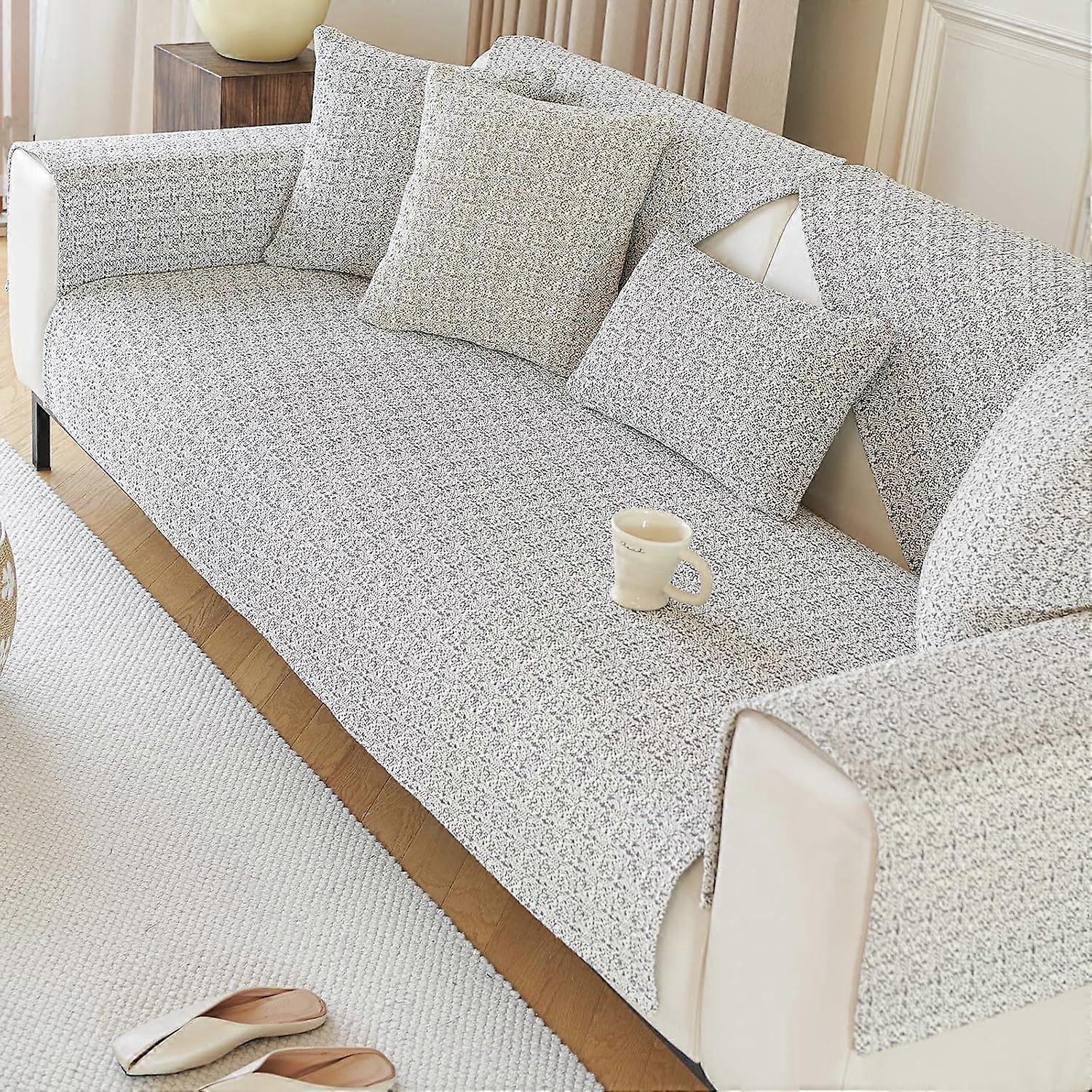 Cotton Linen Woven Sofa Couch Cover Farmhouse Style Sectional Couch Covers Washable Anti Slip Sofa Slipcover Furniture Protector for Kids Dog Pet, 1
