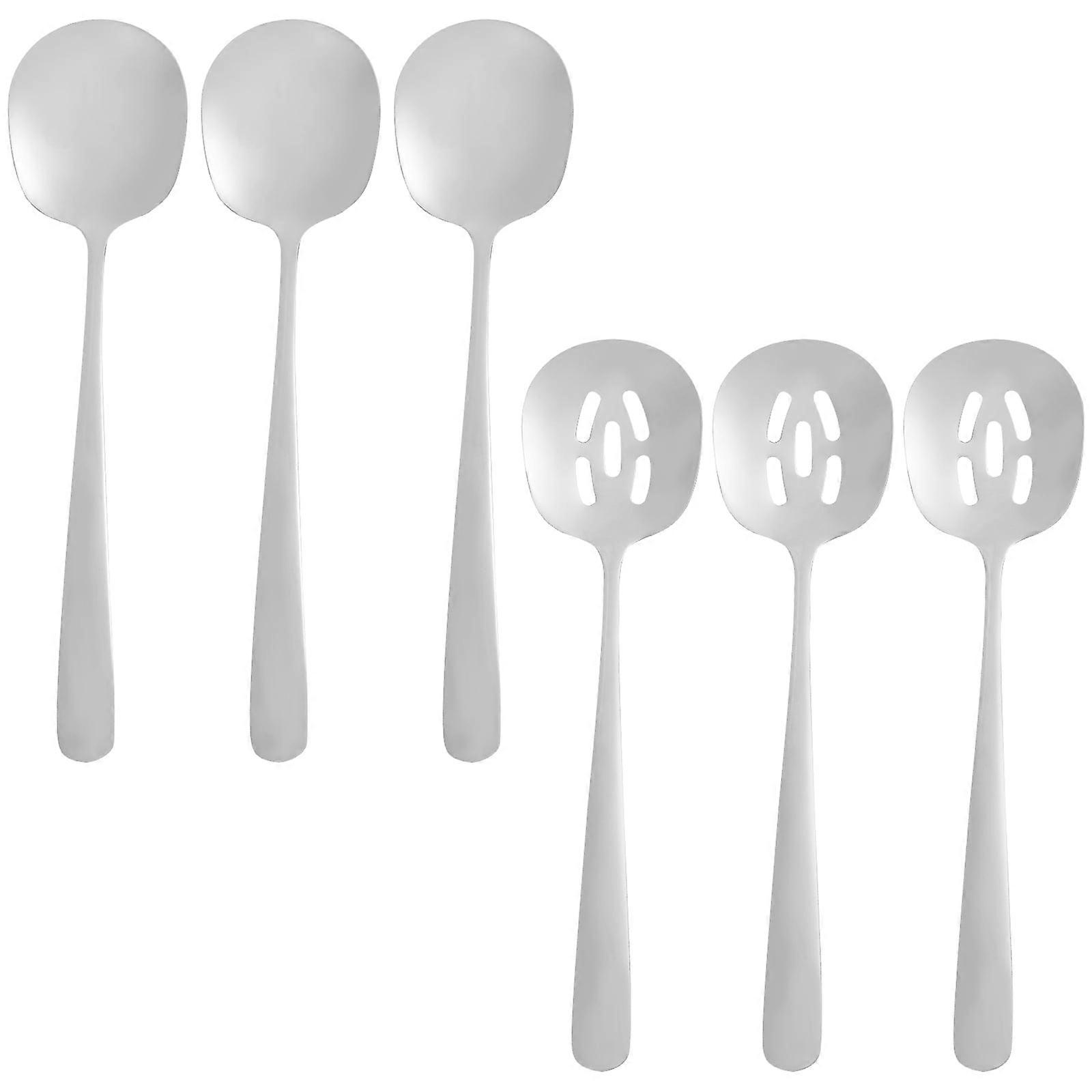 Grusce 6Pcs Large Serving Spoons Set (3 Solid + 3 Slotted) Stainless Steel, Rust Proof, Buffet Banquet Spoons Compatible with Restaurant Catering