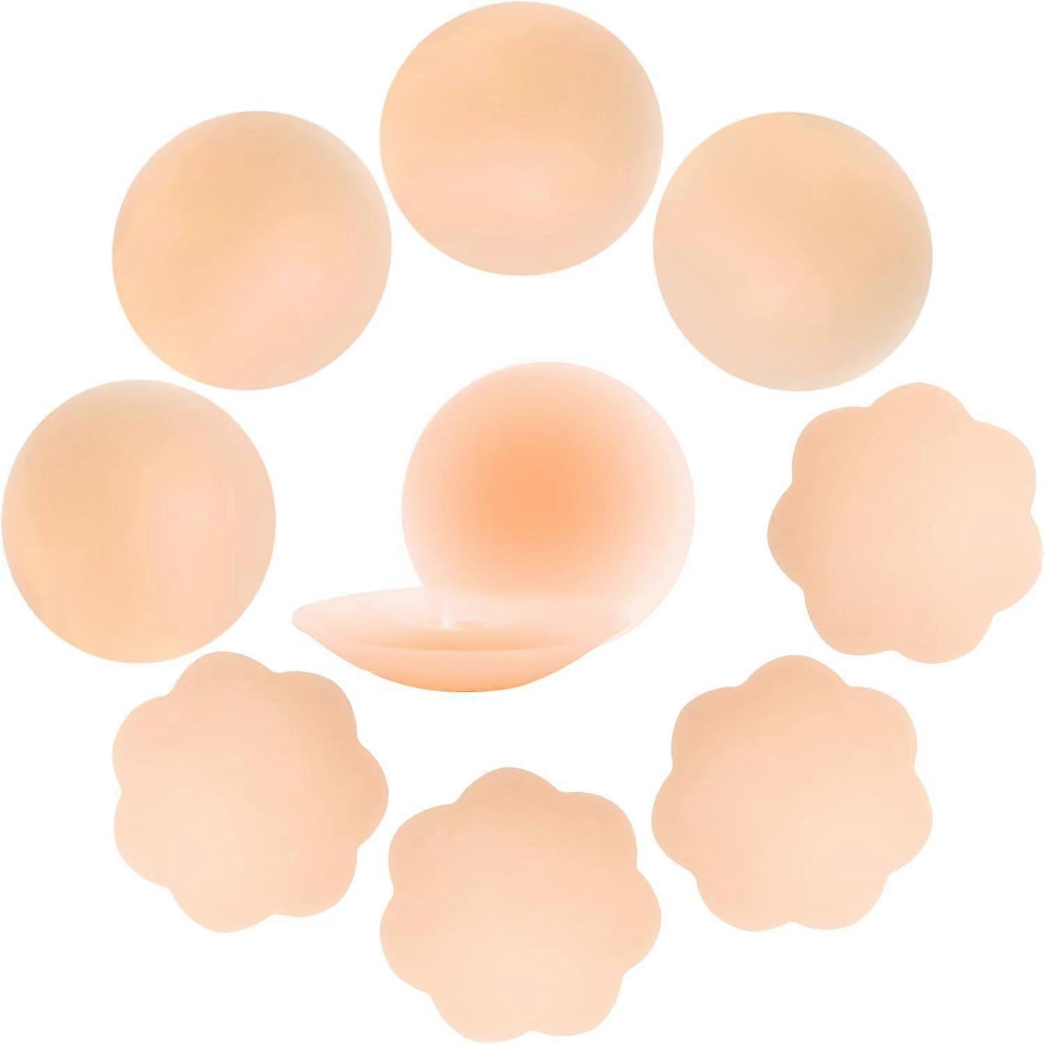 5 Pairs Nipple Covers - Invisible Reusable Nipple Pasties for Women, Sticky Adhesive Breast Petals Ultra-thin Beige