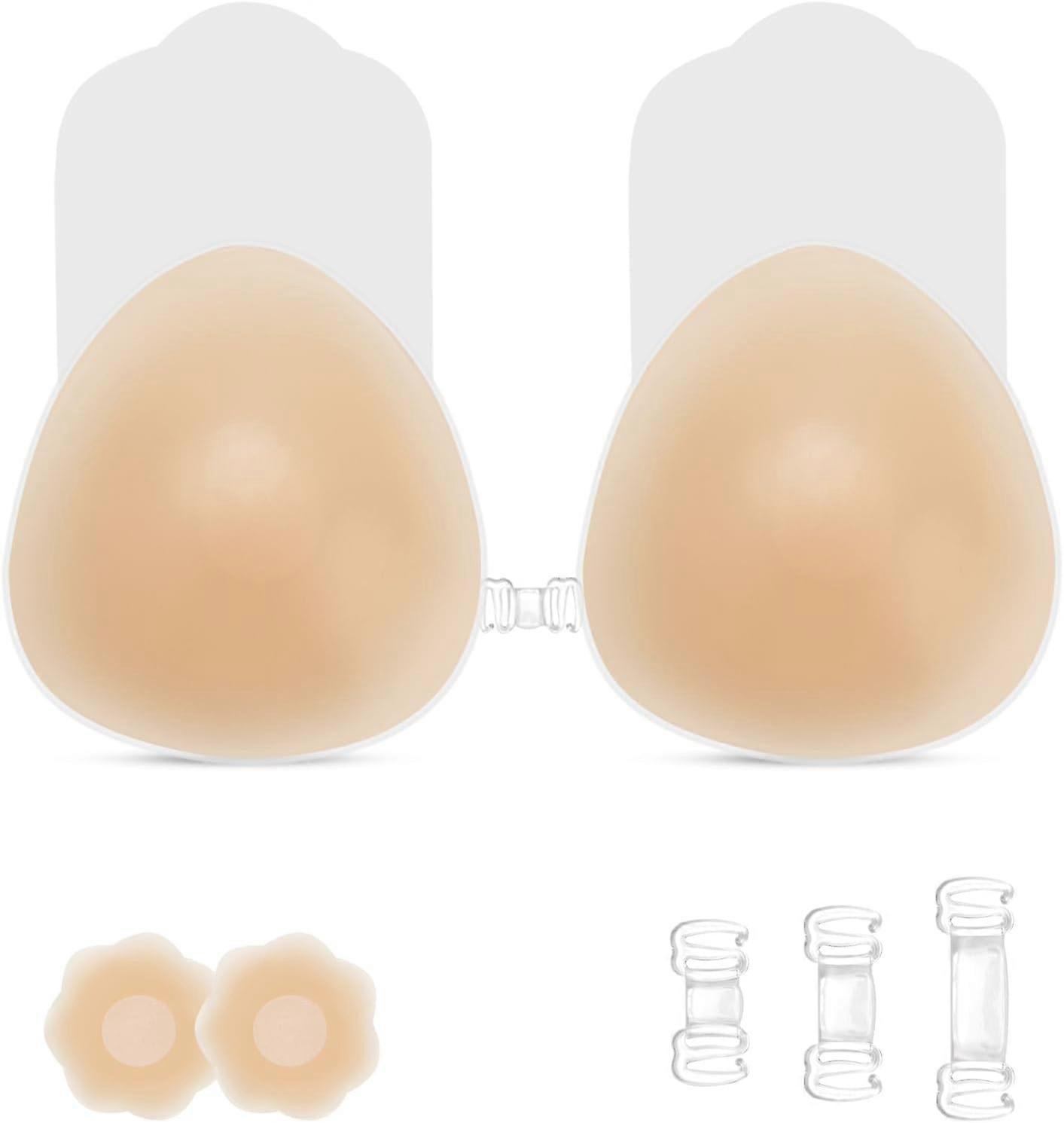 Invisible Sticky Bra Adhesive Strapless Lift Up, Nipple Covers Bunny Bra for Women Beige