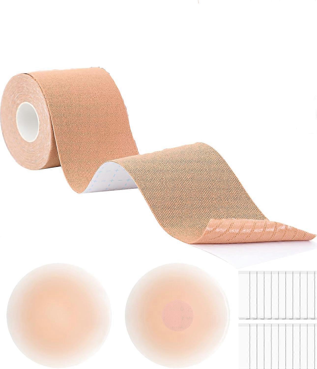 Boobtape, Breathable Breast Lift Boob Tape, Body Tape, Satin Breast Petals, Silicone Breast Reusable Adhesive Bra Light Beige
