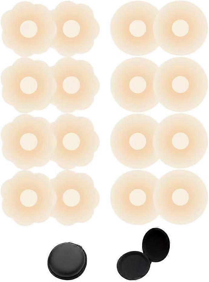 2: COMFORTABLE TO WEAR: : Adhesive on back of boob pasties ensure a secure comfortable fit, giving you confidence to move freely. You can wear silicone nipple covers reusable during various activities, swimming, wedding, traveling, shopping, daily use. (can be reused 25 times or more)5: BEIGE AND ROUND SHAPE: : Beige silicone pasties blend seamlessly with most skin tones. Round shape provides ample coverage and suits wide range of breast shapes and sizes cup A B C D E. Carry these petals in your purse anytime and anywhere for a quick fashion fix.4: SWEATPROOF AND WATERPROOF: : Nude pasties are designed to be waterproof and sweatproof, without worrying about coming off, making them suitable for swimming and do exercising. Breast covers stay in place even when submerged to ensure reliable coverage.3: INVISIBLE AND SEAMLESS DESIGN: : Pasties nipple covers are virtually invisible under clothing, ensuring a seamless and natural look. Cakes nipple covers provide a discreet solution for a smooth appearance to wear swimsuit wedding dress T-shirts skirt.1: SAFE AND REUSABLE: : 8 pairs round nipple cover made from premium medical grade silicone adhesive is safe for skin contact. Reusable nipple covers for women are easy to use, remove to provide cost-effective way.