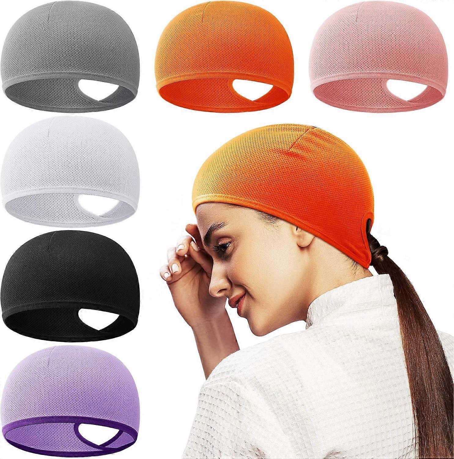 Ponytail hole design: the summer skull caps designed with a ponytail hole at the back leaves enough space for your long hair, so it is a nice gift for women who has a ponytail or high bun when the summer weather is comingAppropriate size: the helmet liner comes in a common size and fits most people, so you can order them relievedly and avoid the problem of the wrong sizeBreathable material: the skull cap is made of polyester and spandex, which has good elasticity, air permeability and sweat absorption, not easy to slip and break, providing a comfortable wearing experience for you, and allow you to wear on it and take off convenientlyPackage contents: you will receive 6 different colors skull caps, sufficient quantity and various colors can meet your different daily use and replacement needs, and you can also share them with your friends or familiesPractical to use: the cycling beanie caps can be applied for outdoor or indoor activities, such as go hiking, cycling, biking, riding or other sports, and it is a necessary item for sport lovers