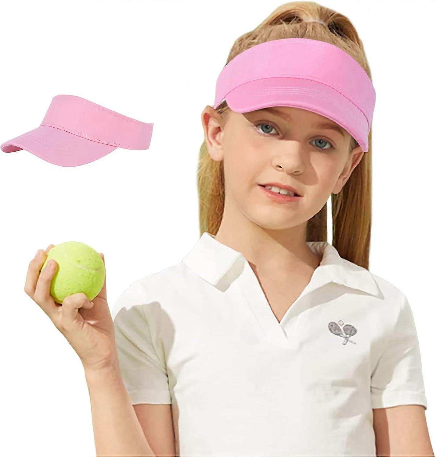 Material: The kids visor sun hat is made of 100% cotton, breathable and comfortable for the perfect fit, especially for outdoor activities. Fine cotton fabric protects the hair and eyes from Ultraviolet. 100% cotton sweatband make kids feel fresh.Design: Top empty perfect for kids outdoor activities, and also most suitablie for girls high ponytail messy bun. The wide brim design of the kids sun hat can block sunlight and ultraviolet rays from shining on the face, avoid sunburn, and the athletic sports hats protect eyes and skin. Let children do outdoor activities in the sun, and no longer fear ultraviolet light.Adjustable Size: This sports kids visor cap has an adjustable design on the back, with a head circumference of 50-56cm, its brim width of 2.6 inches can effectively block the sun, which is suitable for girls, boys or teenagers aged 6-12.Best Gift: This Light and functional girls visor cap is the perfect choice for children's outdoor activities. This summer outdoor visor kids baseball hat can be used as a good gift for birthday, Halloween, Thanksgiving, Christmas and New Year, so that your children can enjoy outdoor sports.Multifunction: The Girls Sun Visor Hat is a good partner for children to participate in running, hiking, rock climbing, golf, tennis, cycling and other outdoor sports. This Visor for Girls Summer UV Protection Sport Cap is specially designed for children with active styles. Sweatband take the sweat away in sports. Moreover, the simple design makes the kids top hat for girls very suitable for sportswear.