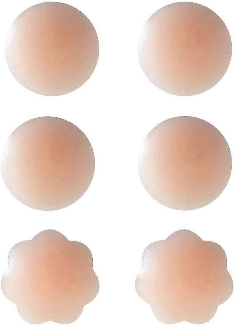 GREAT MATERIALS - These women invisible adhesive nipple covers are made from medical grade(hypo-allergenic Eco-friendly)silicone. Doubling protection of sensitive parts of a womanCOMFORTABLE & PORTABLE - The invisible silicone nipple covers are designed small enough to fit in a handbag. Unique matte design allows you to wear more peace of mindSUITABLE DIAMETER - The diameter (2.64 IN/3.35 IN) of reusable adhesive nipple covers for a more secure coverage, you won't feel anything when wearing themPACKAGE INCLUDED - 3 Pairs invisible self adhesive nipple cover pastiesSELF-ADHESIVE & REUSABLE - The women Silicone Pasties are Waterproof and Washable, Perfect under t-shirts, sheer tops, dresses, and swimwear. The product has been improved in process and quality to avoid product stickiness and shedding
