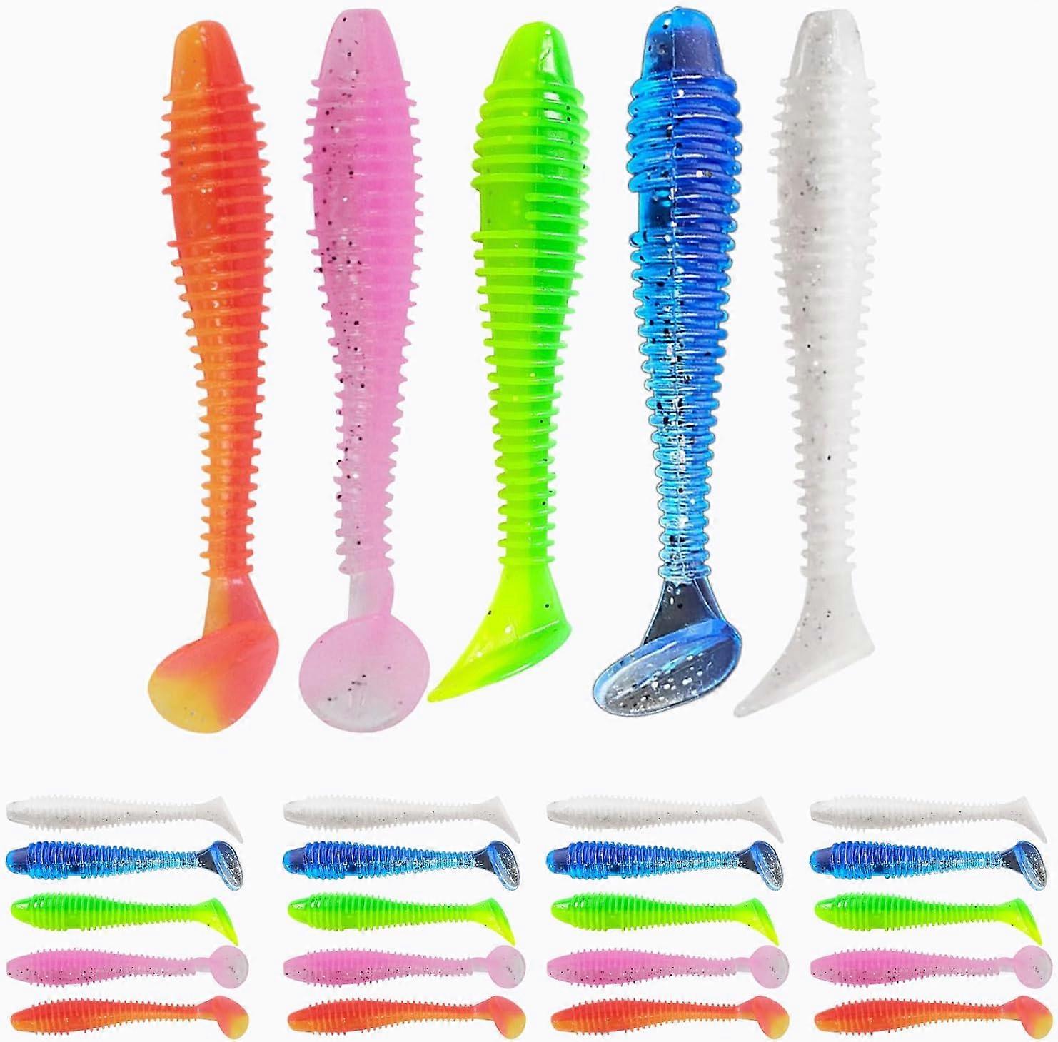 Large Quantity to Meet Demand- As a consumable, the demand for swimbait is relatively large, so a large number of packages can better meet fishing man's needs. Our bait is packed of 50pcs in 2.16 inch.Quality Materials Soft Baits Lures- With the high-quality PVC material, every soft bait has a strong resistance to tearing. Besides, Some nature oil attached to the whole body makes the lure so smooth, more durable, and not easy to deform.Threaded Bait Appearance- Whether you are fishing in coral reefs, estuaries, rivers, freshwater or saltwater, this fishing lure is suitable, you can fish bass, walleye, yellow, perch, pike, muskie, trout, salmon etc.Amazing Paddle Tail- The amazing part of it is the tail, which provide the swimbaits with free swinging action & triggering fish to bite as it wiggles.Exquisite Design- The soft plastic lure features top and bottom hook slots for easier rigging and better hook penetration. The lifelike swimming action and natural appearance of paddle tail swimbaits make them highly attractive to fish.