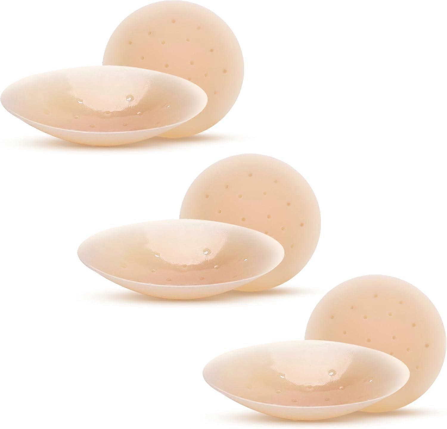 3 Pairs Nipple Covers-Women Reusable Adhesive Silicone Breast Petals with Breathable Holes Beige